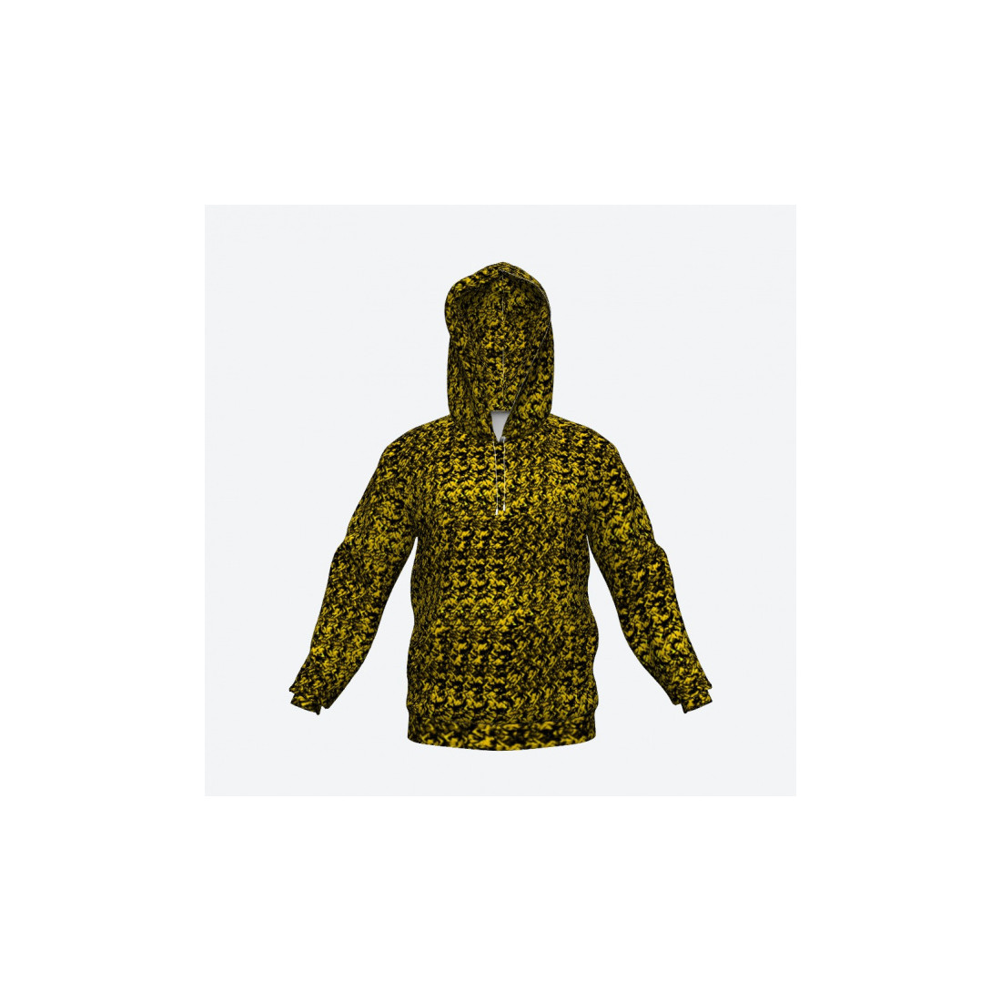 Mikina s kapucí a klokaní kapsou se ŽLUTÝM dánským plyšovým vzorem.