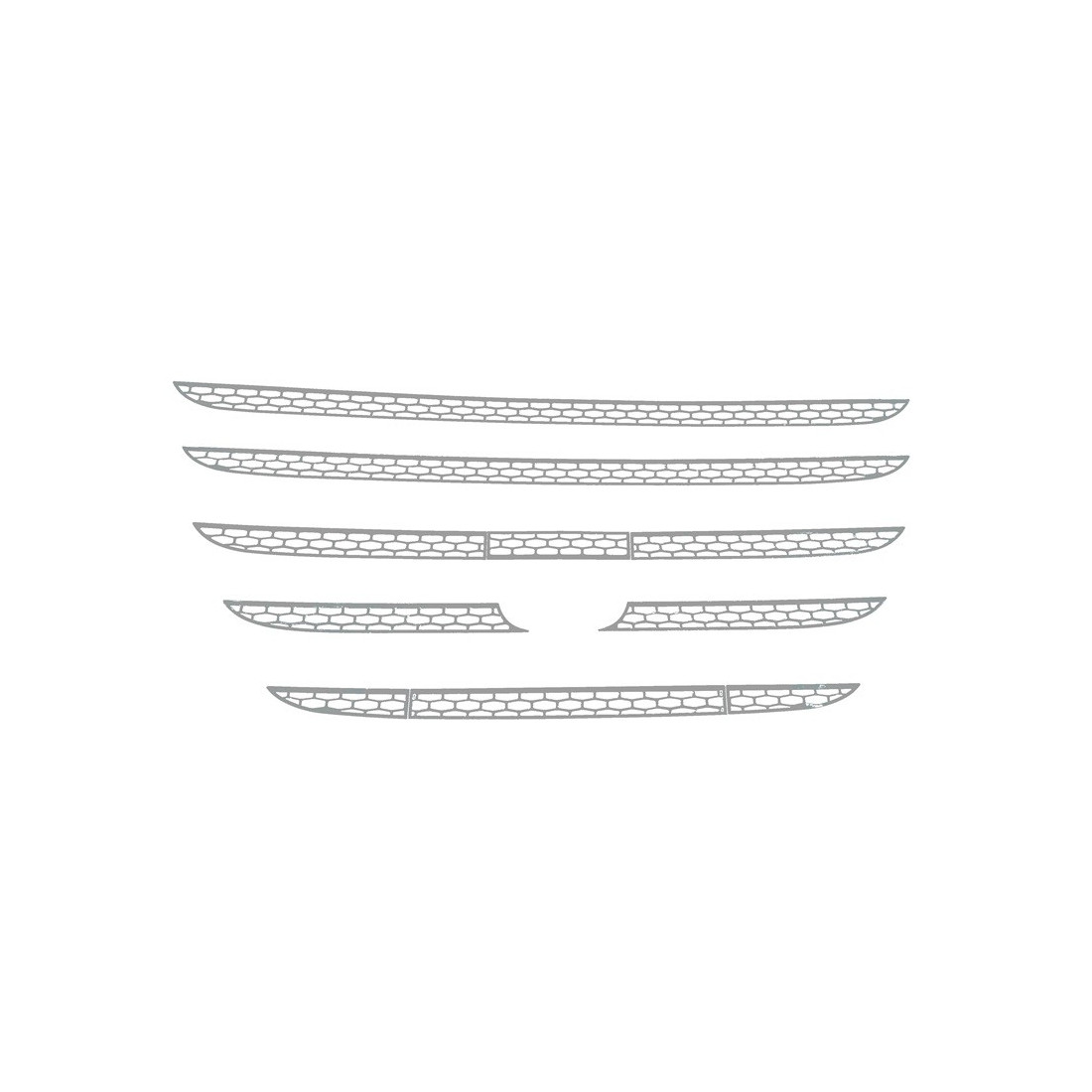 Sada chromových dekorů - lišty na tovární gril ze zrcadlově leštěné nerezové oceli (304). Montáž na oboustrannou pásku (součástí balení). Určeno pro vozy DAF XF E6 od roku 2013.
