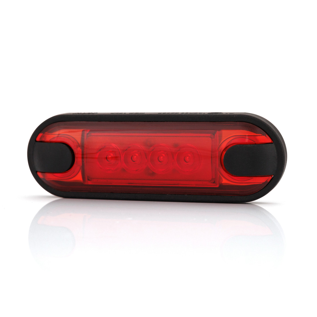 Červená obrysová lampa LD 3212 pracuje na 12 i 24 V a spotřebovává minimální energii (výkon 0,5/1W).