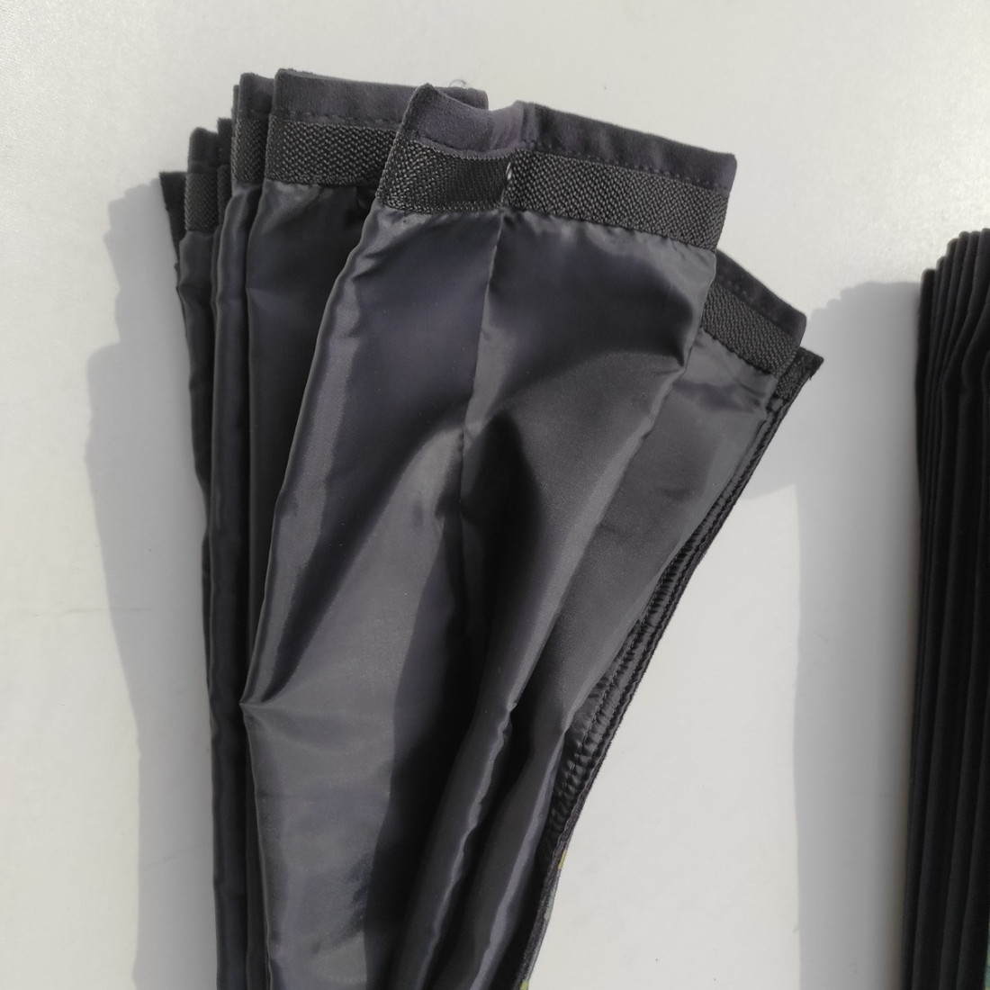 -2x skládací dvouvrstvý skládací závěs (zvenku černý plyšový materiál, zevnitř černá polyesterová podšívka, ZELENÁ plyšová úprava DP03GREEN), rozměr závěsu 250x88cm,