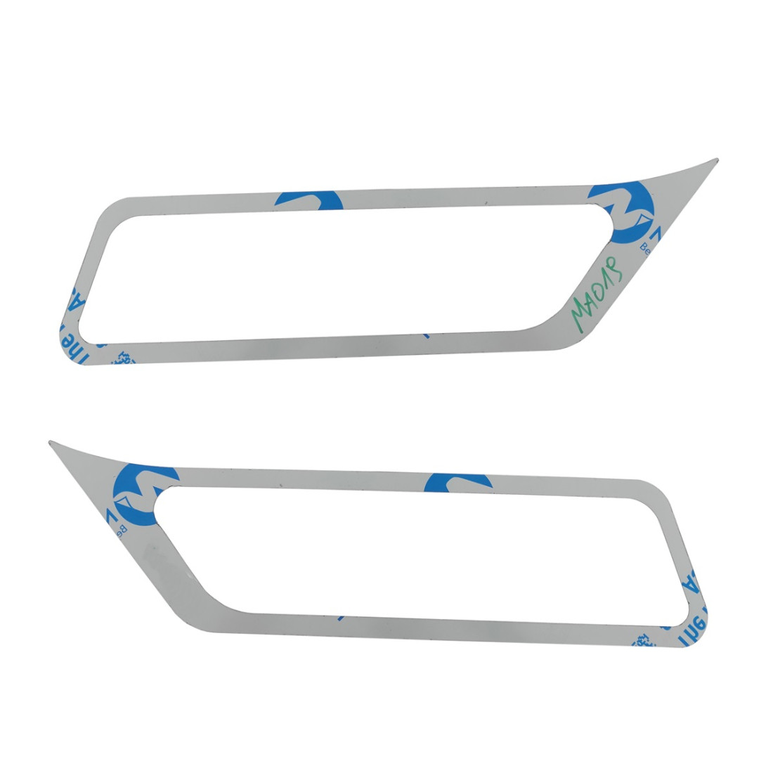 Un conjunto de marcos decorativos alrededor de las luces del parachoques, fabricados en acero inoxidable pulido a espejo. En algunas fotografías, el producto puede estar cubierto por una lámina protectora gris, que se puede quitar para crear un efecto espejo.