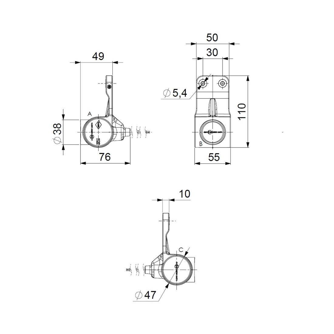 La LD 3110/GRAPHITE/L es una lámpara de posición colgante compacta para montaje en el lado derecho del vehículo. Ofrece luz blanca, ámbar y roja, y es ideal para una amplia gama de aplicaciones, desde remolques pequeños hasta camiones grandes.