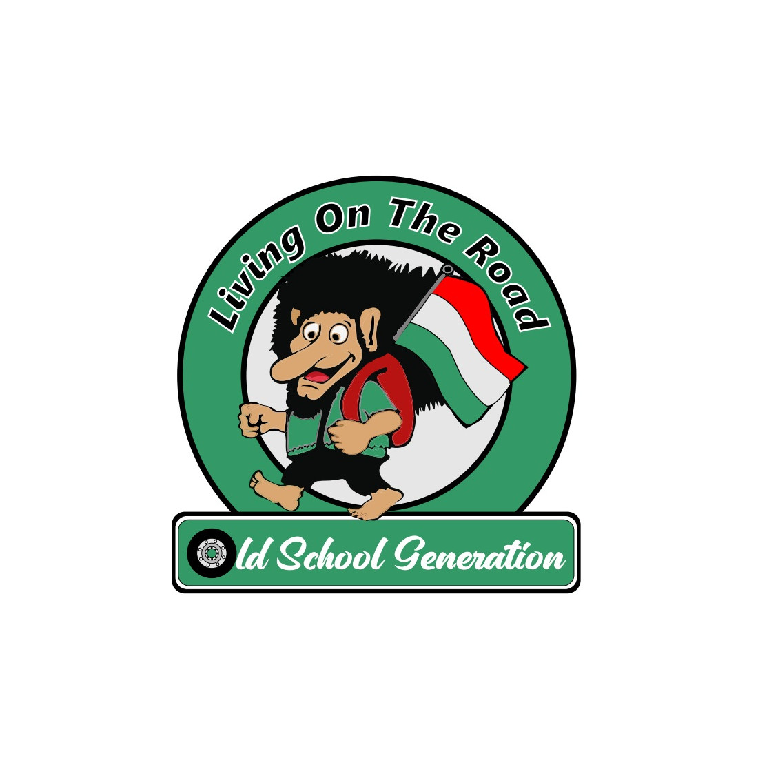 Adhesivo "LIVING ON THE ROAD HU" de 8 cm de ancho.