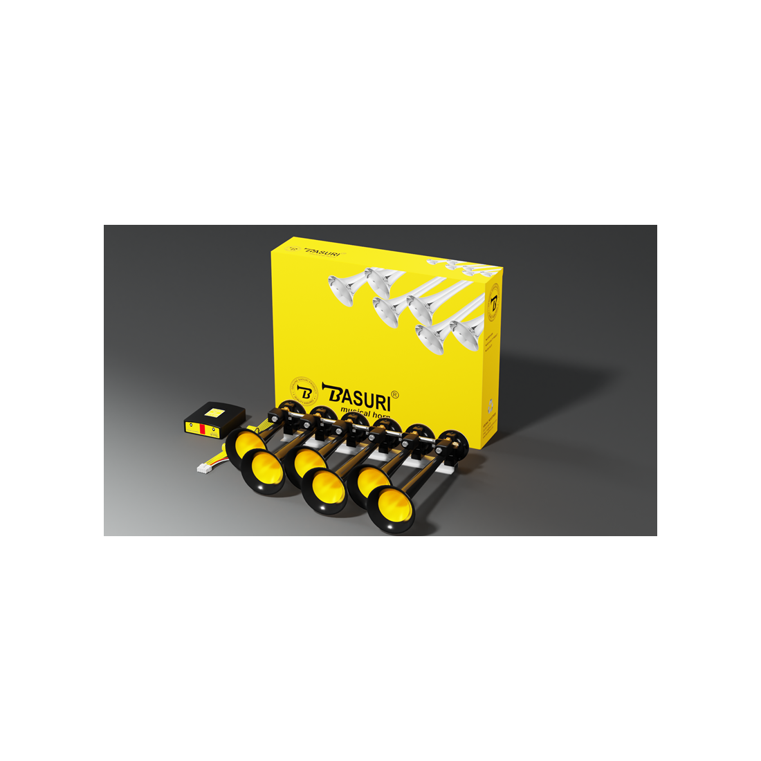 Signal pneumatique Basuri version 4.0, appelé Baby Shark, avec 22 mélodies différentes. La fanfare fonctionne aussi bien en 12 qu'en 24V. Alimentation en air requise !