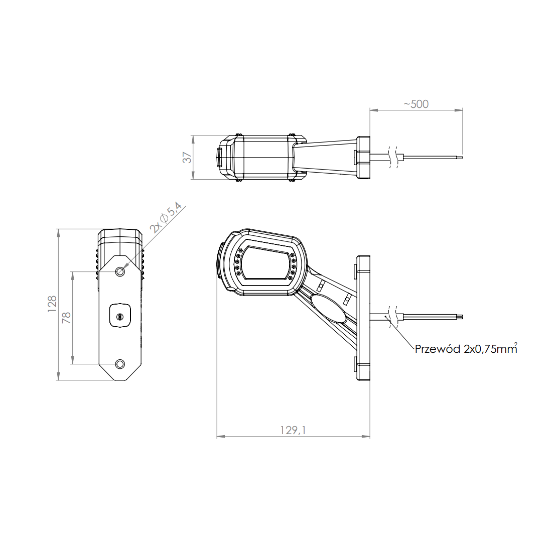 Feu de position LED à trois fonctions : feu de position avant (blanc), feu de position arrière (rouge), feu de position latéral (orange)