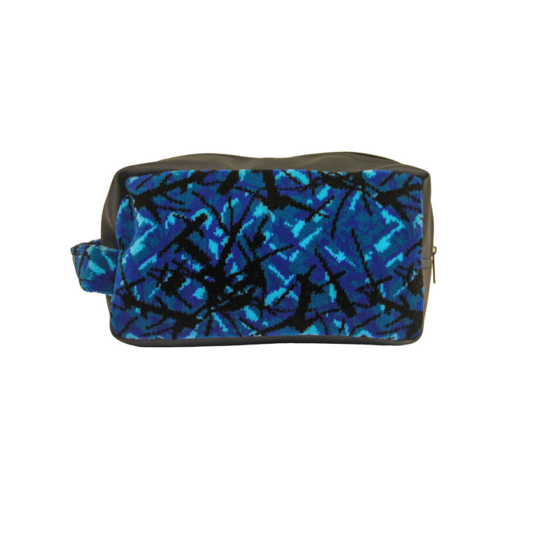 Trousse à maquillage mesurant 23x12x10cm avec des éléments en peluche danoise bleue.