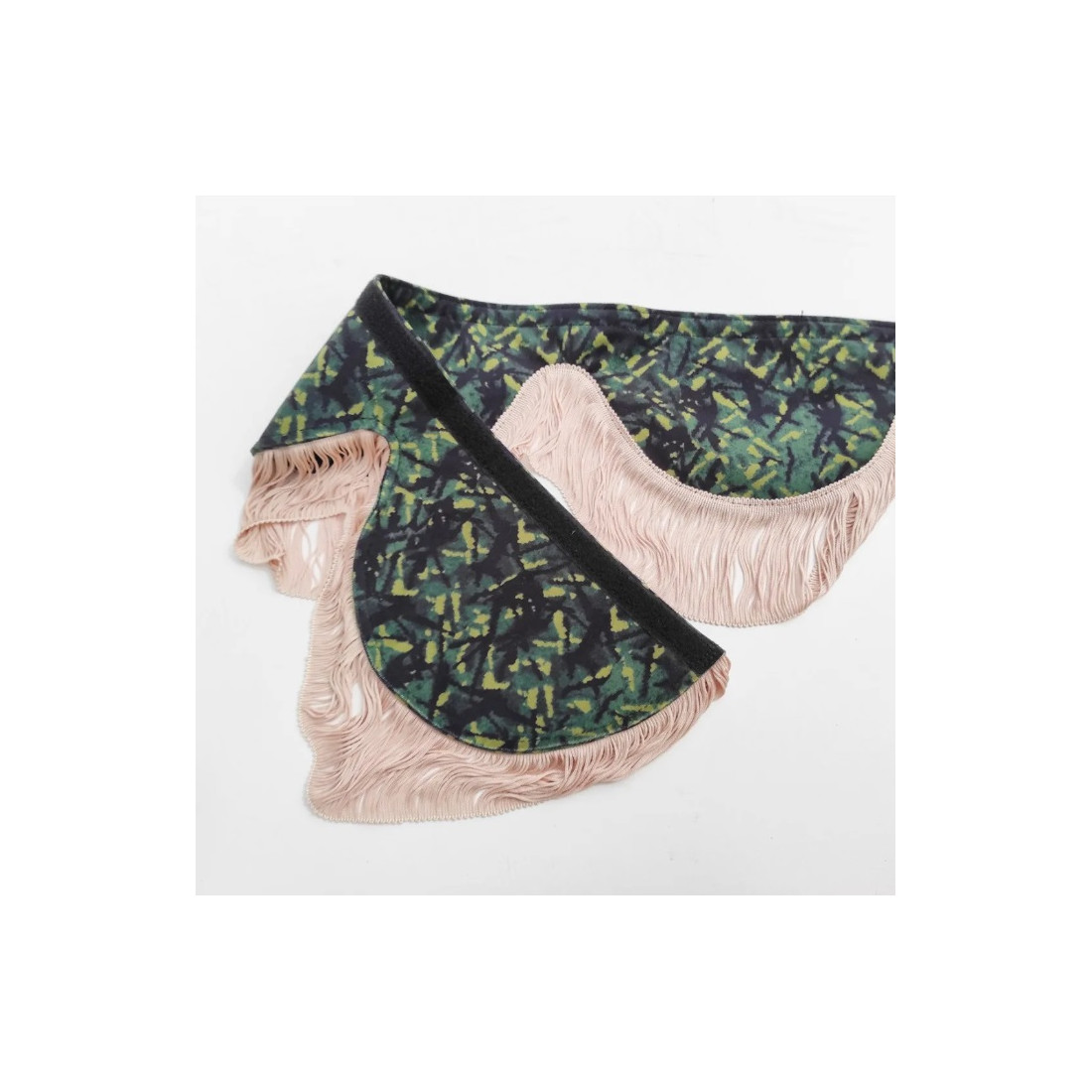 Jupe de pare-brise (extérieur et intérieur en tissu peluche VERT de style danois DP03, franges BEIGE) avec fixation velcro.