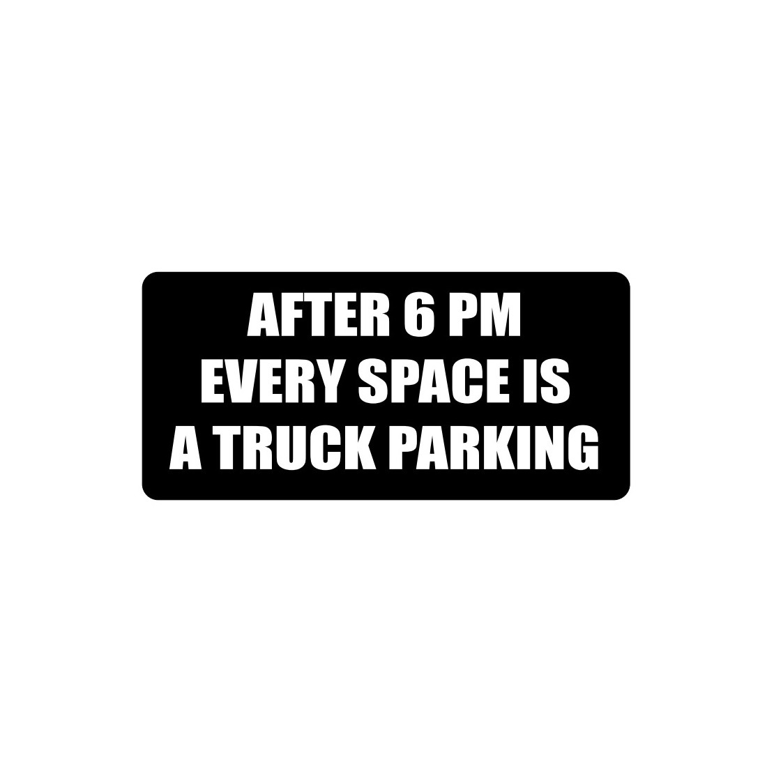 Autocollant "AFTER 6PM EVERY SPACE IS A TRUCK PARKING" format 15x7cm.