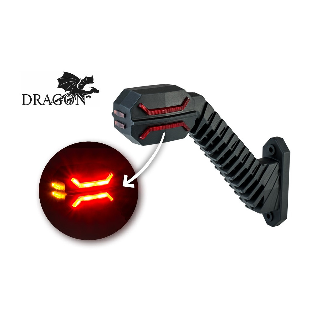 We present to you a new model of the LD 2994 Dragon marker lamp by Horpol. It is a three-function lamp on a long, curved arm and should be installed on vehicle left side. The voltage at which the marker lamp operates is 12/24V with very low energy consumption. Production is carried out exclusively using branded LED diodes, which are distinguished by high quality of light and attractive appearance.