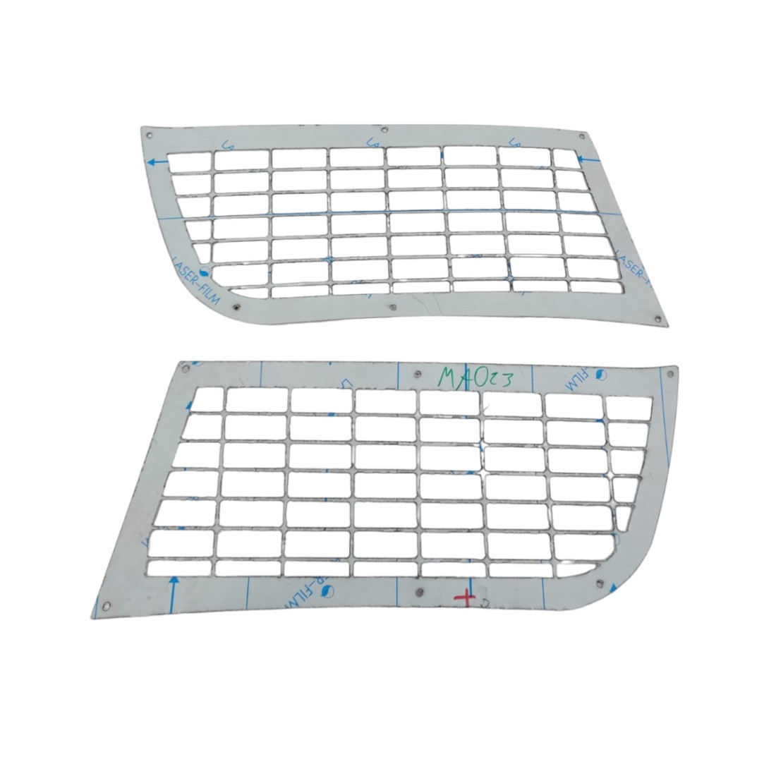 A set of decorative reflector grids made of mirror-polished stainless steel. In some photos, the product may be covered in a gray protective foil, which can be removed to create a mirror effect.