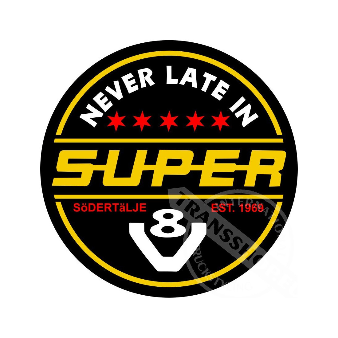 NEVER LATE IN V8 SUPER STICKER 8 CM