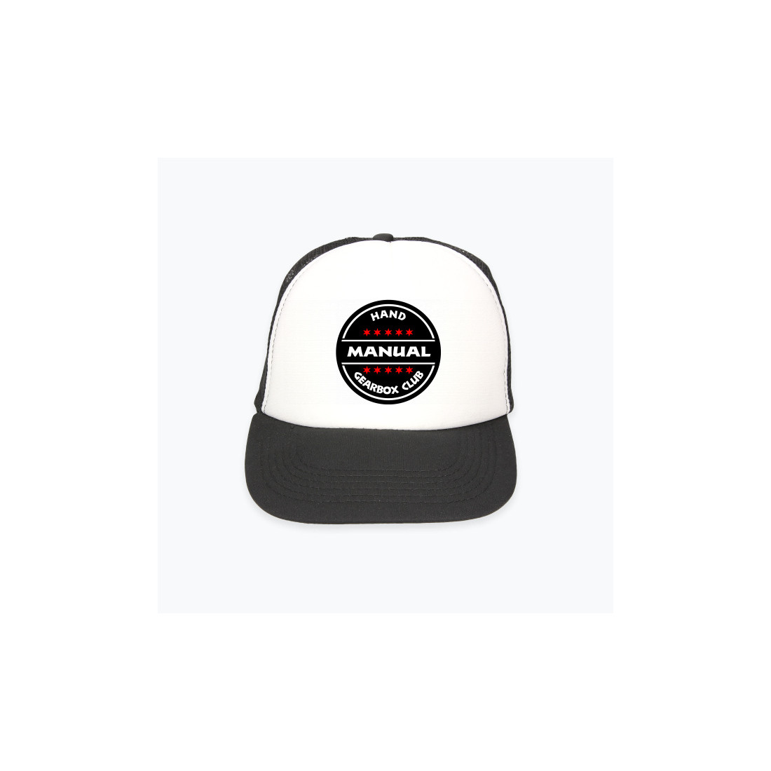 Univerzalna crno-bijela bejzbol kapa, tzv. trucker cap - "MANUAL GEARBOX CLUB"