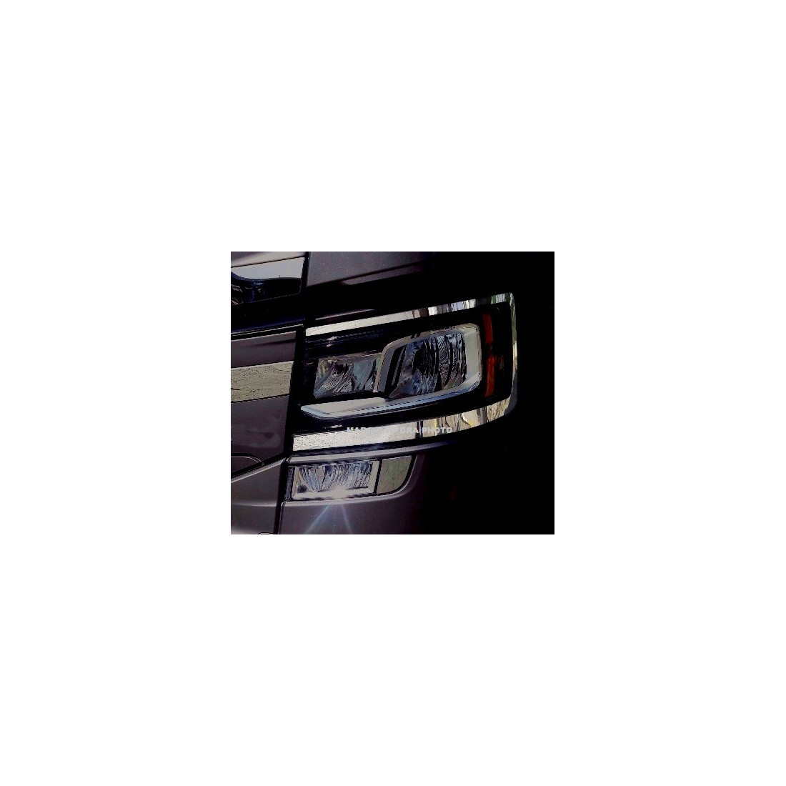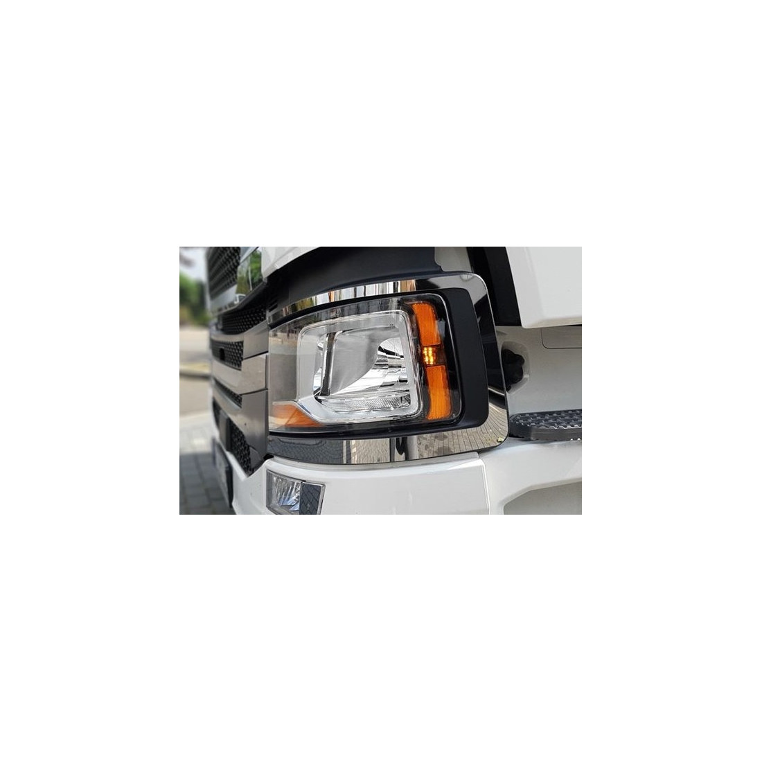Set kromiranih okvira farova - dekor od zrcalno sjajnog nehrđajućeg čelika 304. Dizajnirano za Scania Next Gen automobile. Cijena za set za 2 strane!