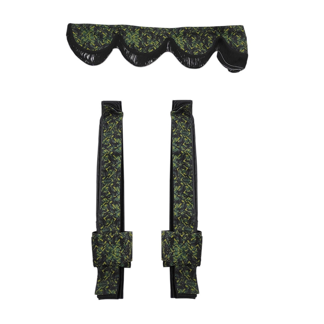 - zavjesa iznad vjetrobranskog stakla (izvana i iznutra plišani materijal DP03GREEN, crne rese) s čičak trakom, dimenzije zavjese 226x21cm,