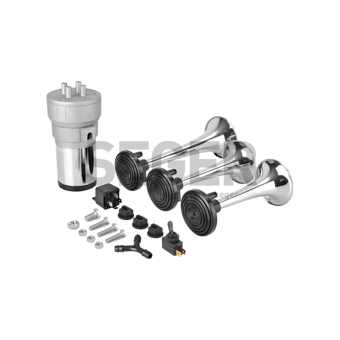 SEGER pneumatikus jelző beépített 12V-os elektromos kompresszorral (kompresszor).