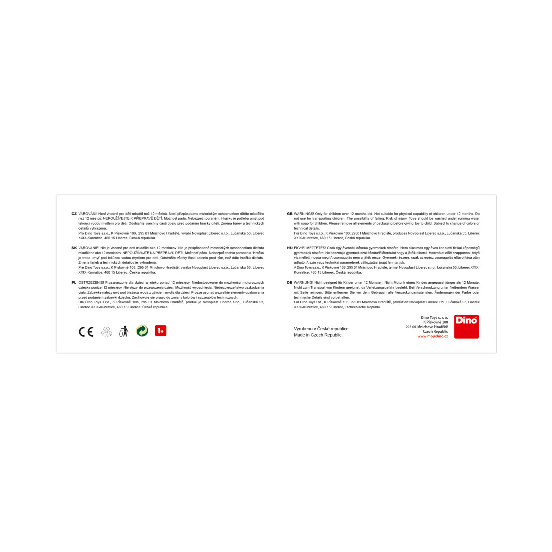 - Dino Toys sro, K Pískovně 108, 29501 Mnichovo Hradiště, CZ, Tel. +420312709312, www.mojedino.cz