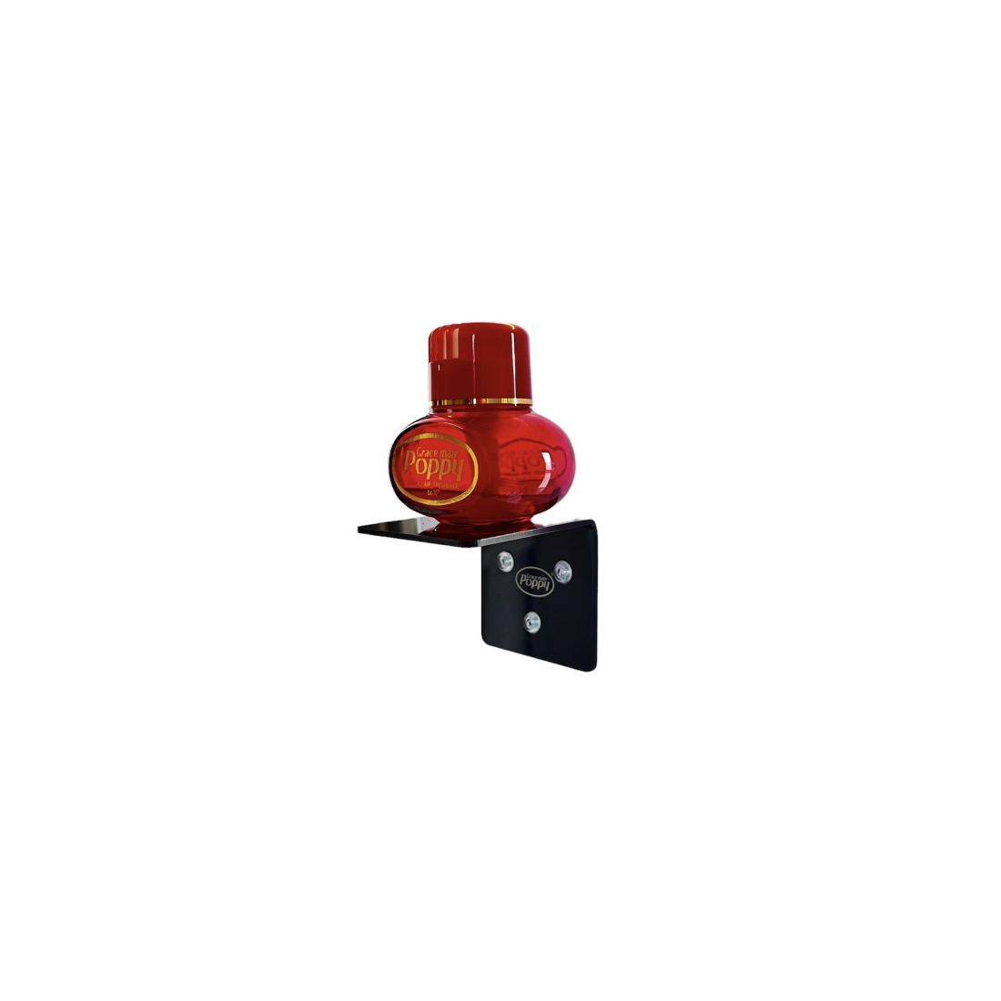 POPPY légfrissítő állvány üvegre szerelve, három tapadókoronggal. Illeszkedik a szabványos 150 ml-es POPPY illatosító flakonok alá.