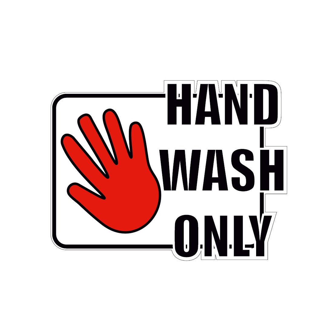 "HAND WASH ONLY" matrica, 8 cm széles.