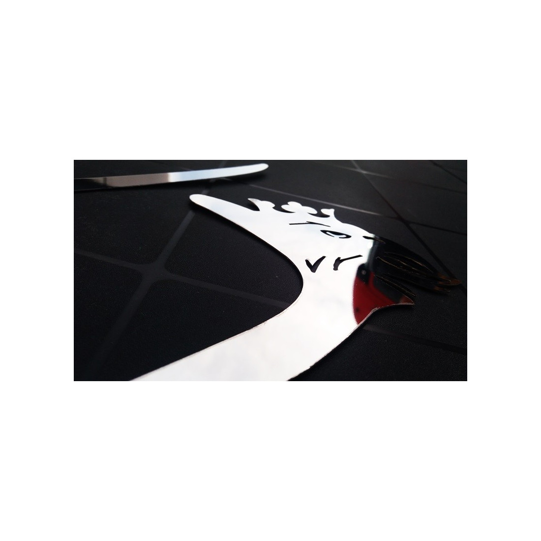 Tükörfényezett rozsdamentes acélból (304) készült első lökhárító dekor - vízszintes díszlécek. SCANIA R polift autókhoz tervezték (2010-2018). Egyszerű felszerelés kétoldalas ragasztószalaggal - mellékelve. Nem eredeti tartozék alkatrész. Ár páronként L+P.