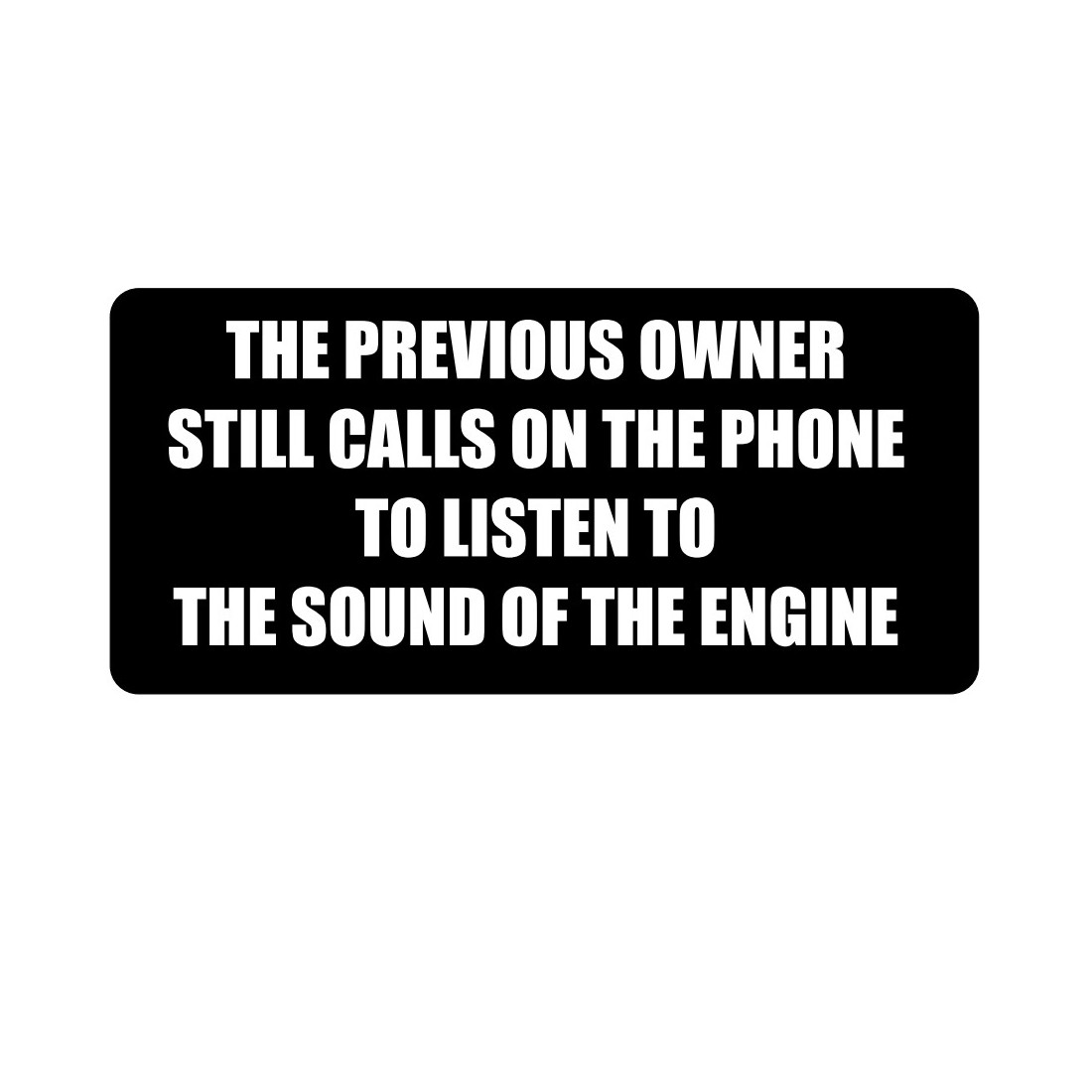 Adesivo "IL PRECEDENTE PROPRIETARIO CHIAMA ANCORA AL TELEFONO PER ASCOLTARE IL RUMORE DEL MOTORE" misura 15x7cm.