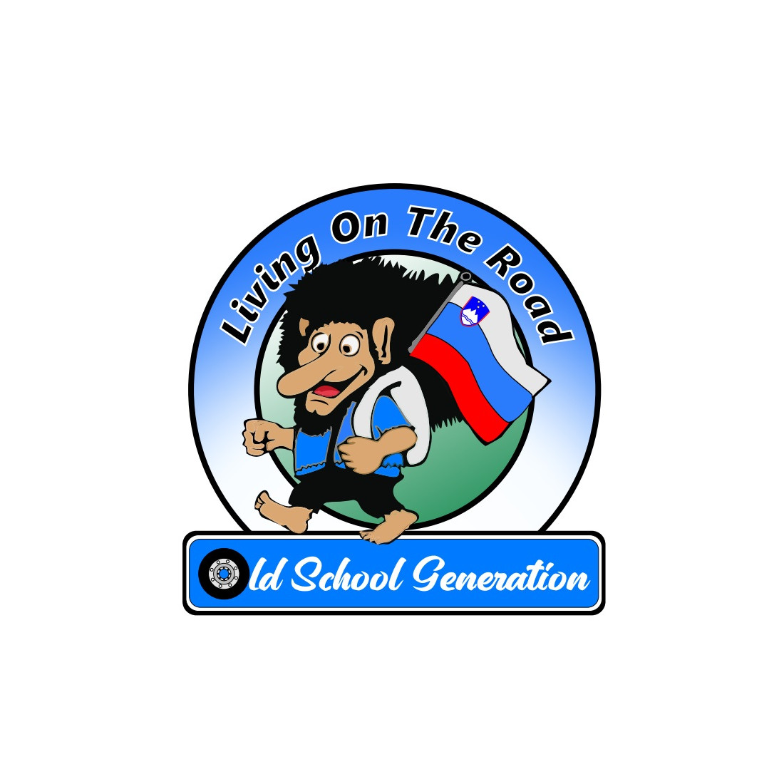 Adesivo "LIVING ON THE ROAD SLO", largo 8 cm.