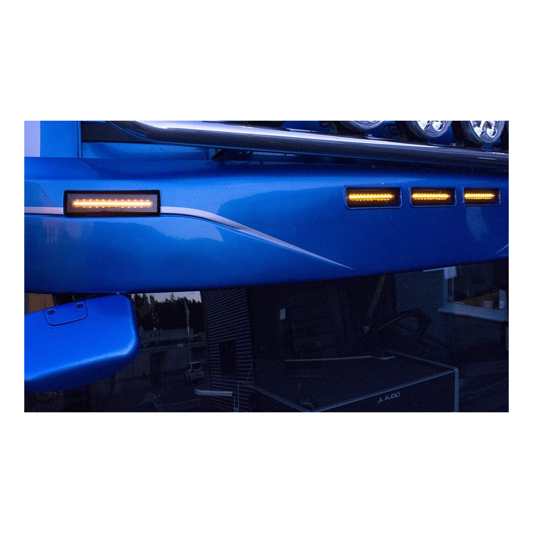 Accessorio, lampada decorativa arancione in stile "next gen", montata nell'aletta parasole, destinata alla generazione precedente, ovvero ai veicoli Scania serie 4, R, P, G, T 95-18.