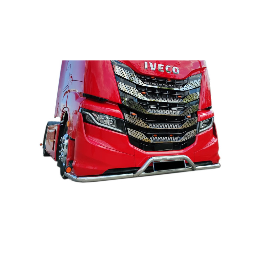 Tubi paracolpi in acciaio inox (inox 304 lucidato a specchio) per veicoliIVECO S-WAY. Il set comprende un kit di montaggio - staffe, viti.