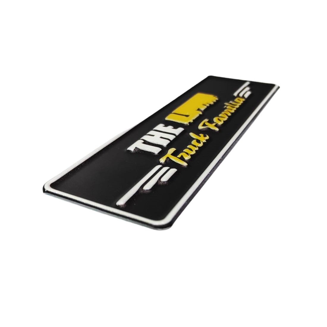 Una targa in rilievo unica e originale di The Truck Familia, che misura 180x55 mm.