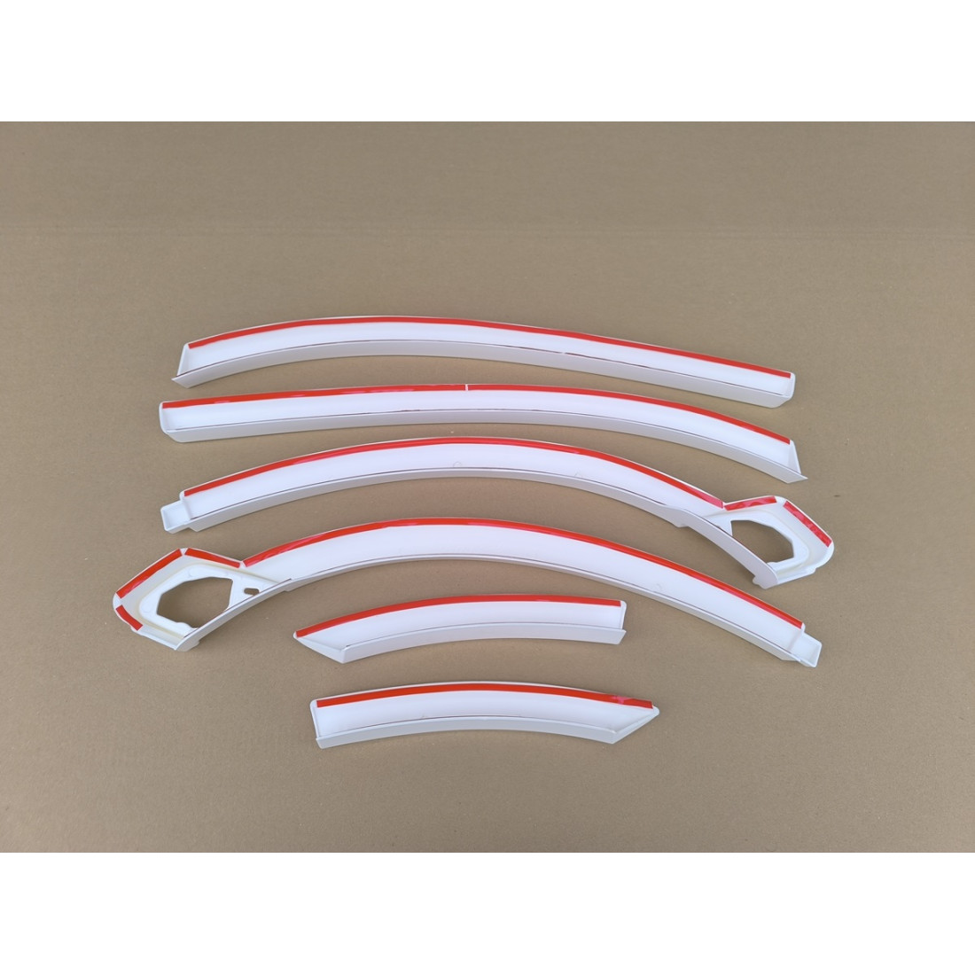 Una serie di estensioni del passaruota realizzate su una macchina per lo stampaggio a iniezione in plastica di alta qualità.