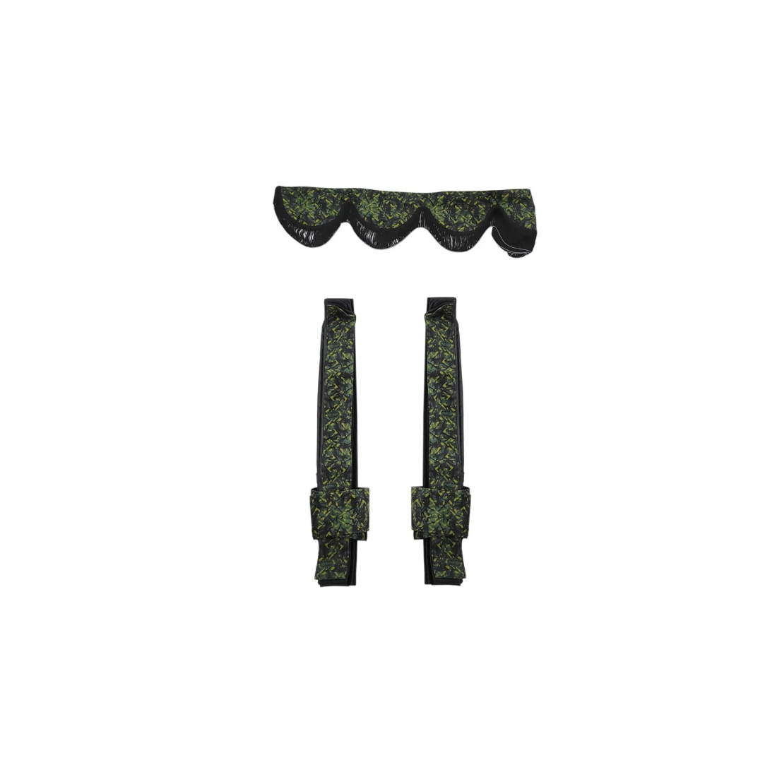 -volant boven de voorruit (buiten- en binnenkant gemaakt van groen pluche materiaal DP03GREEN) met klittenbandsluiting, afmetingen van de volant 226x22cm,