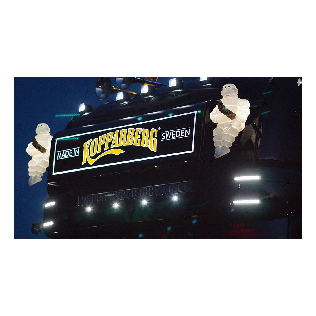Accessoire, oranje sierlamp in "next gen" stijl, gemonteerd in de zonneklep, bedoeld voor de vorige generatie, d.w.z. Scania serie 4, R, P, G, T 95-18 voertuigen.