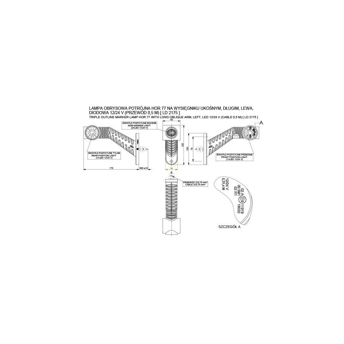Drievoudige markeringslamp op lange diagonale giek, links LD 2175