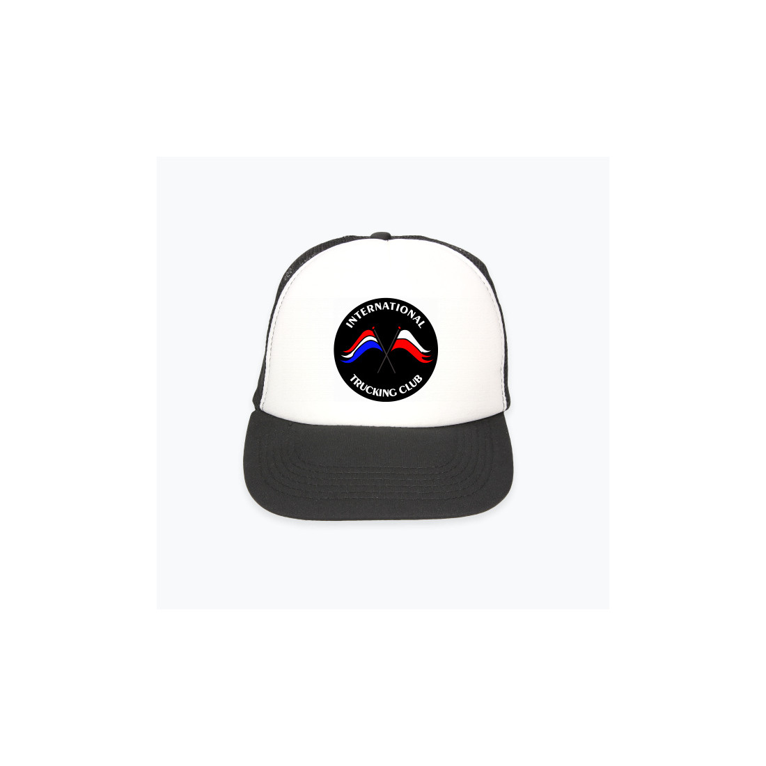 Universele zwart-witte baseballpet, zogenaamde truckercap - "INTERNATIONAL TRUCKING CLUB"
