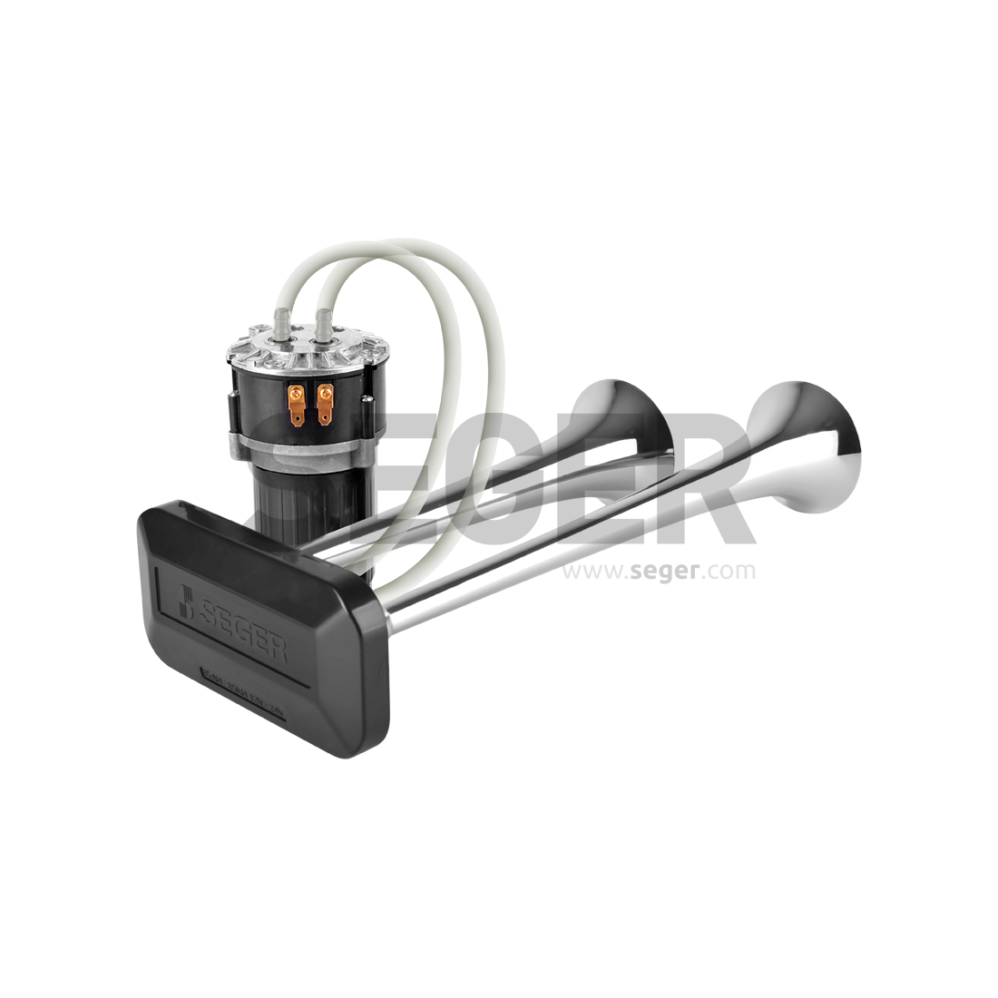 Sygnał pneumatyczny SEGER wraz z wbudowaną elektryczną sprężarką (kompresorem) 12V.