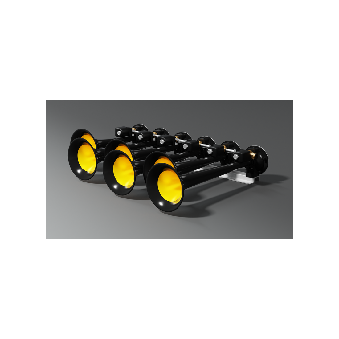 Sygnał pneumatyczny Basuri wersja 4.0 tak zwany Baby Shark z 22 różnymi melodyjkami. Fanfara działa zarówno na 12 jak i 24V. Konieczne zasilanie powietrzem!