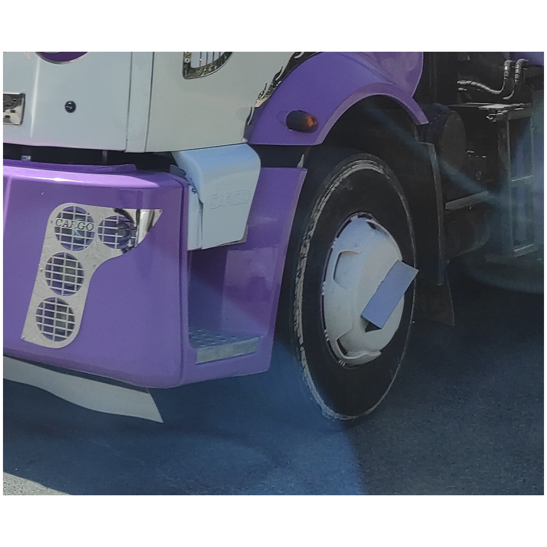 Zestaw 4 sztuk "fyr fyr", czyli nierdzewnych piramidek mocowanych na felgach pojazdu ciężarowego. Produkt akcesoryjny, posiada ostre krawędzie, montaż i użytkowanie na własną odpowiedzialność poza drogami publicznymi.