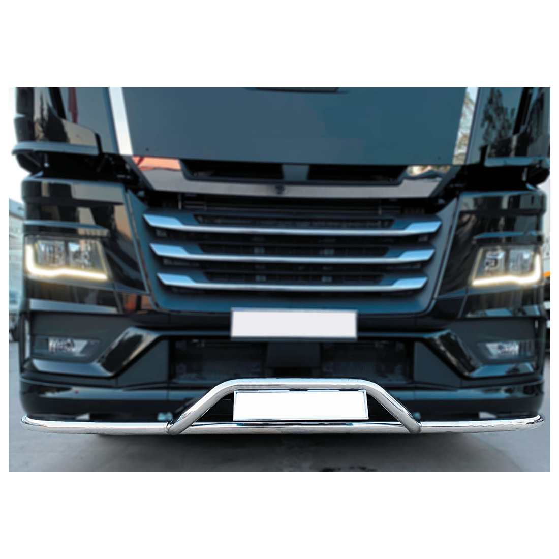 Orurowanie pod zderzak wykonane ze stali nierdzewnej (polerowanej na lustro inox 304) przeznaczone do pojazdów MAN TGX 20+ . Zestaw zawiera komplet montażowy - wsporniki, śruby.