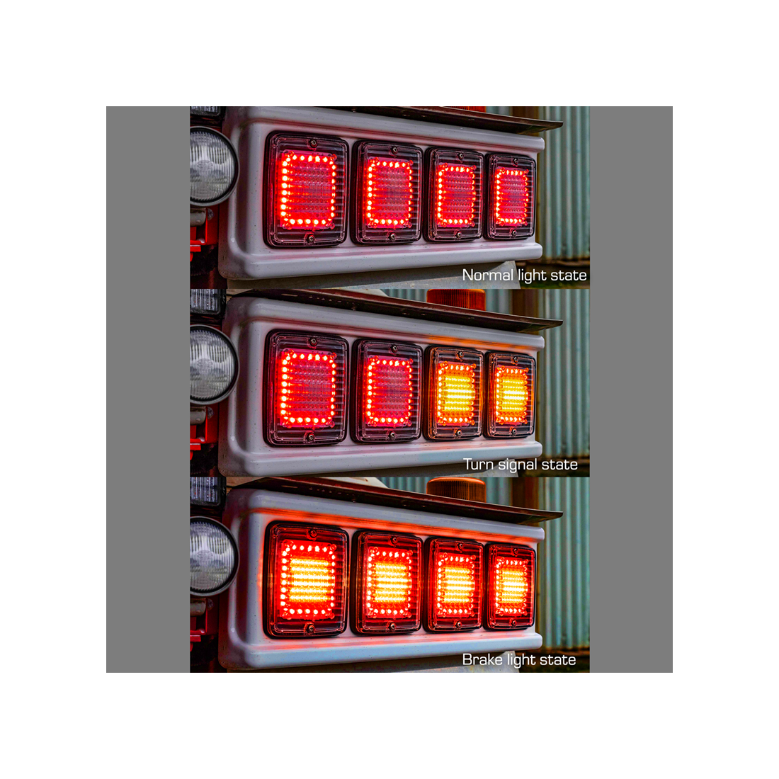 Zabudowy tylnych lamp przeznaczone do ciężarówek oraz naczep. Produkt wykonany z czarnego ABS odpornego na działanie promieni UV. Elementy montażowe ze stali nierdzewnej.
