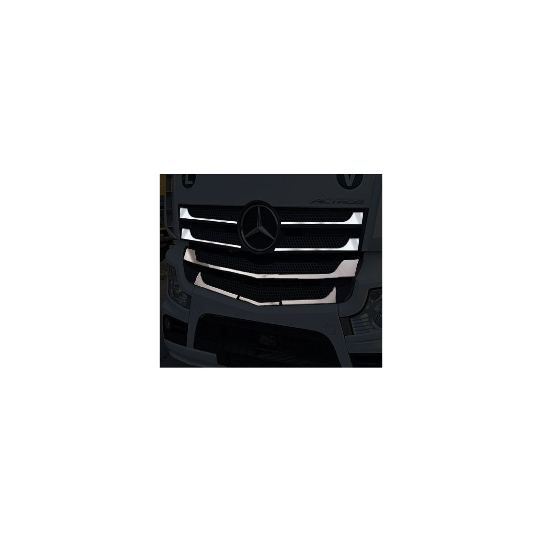 Nierdzewne nakładki dekoracyjne na grill, przeznaczone do Mercedes Actros MP4 / MP5 (wąska kabina 230cm!!).