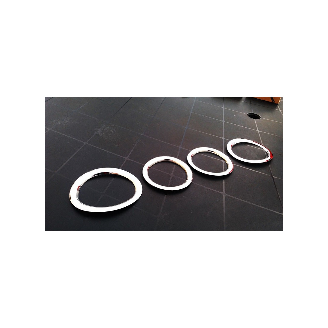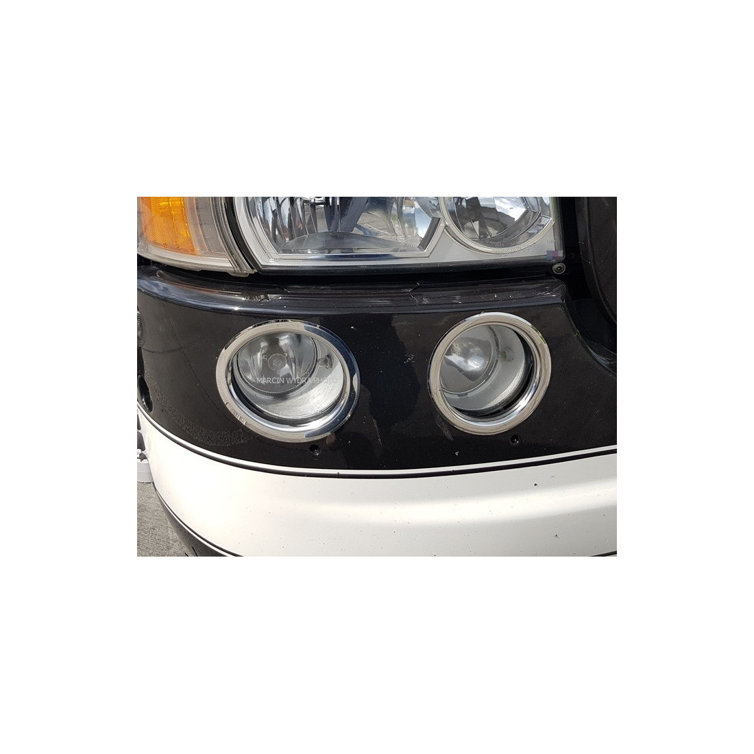 Chromowe ringi idealnie pasujące wokół lamp w zderzaku (halogenów). Produkt tłoczony (3D), najwyższej jakości, wykonany ze stali nierdzewnej polerowanej na lustro.