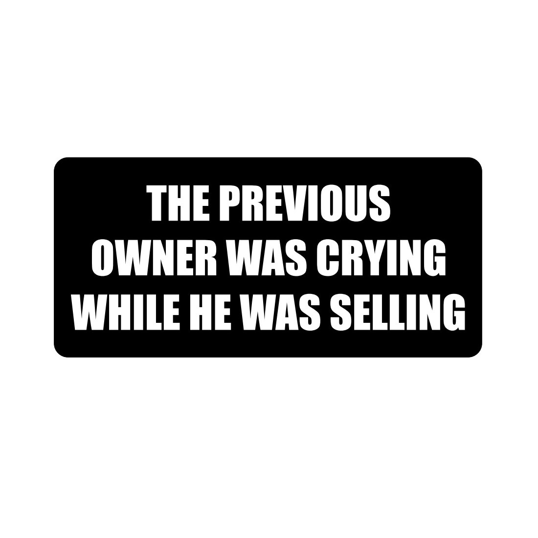 Naklejka "THE PREVIOUS OWNER WAS CRYING WHILE HE WAS SELLING" o wymiarze 15x7cm.Full print.Odporna na warunki atmosferyczne.