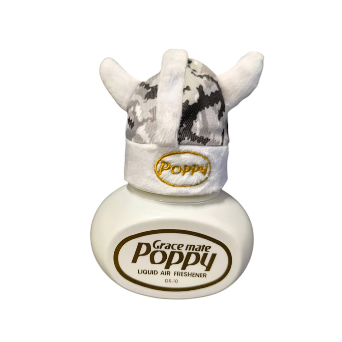 Oryginalna mini czapka ozdobna na odświeżacz POPPY (na buteleczkę 150ml) we wzorze szarego duńskiego pluszu (nadruk).
