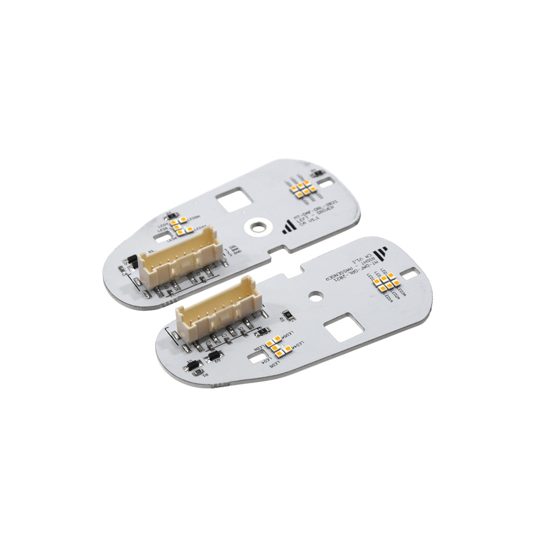 Kompletny zestaw modułów LED DRL zmieniających barwę świateł do jazdy dziennej na pomarańczowy.