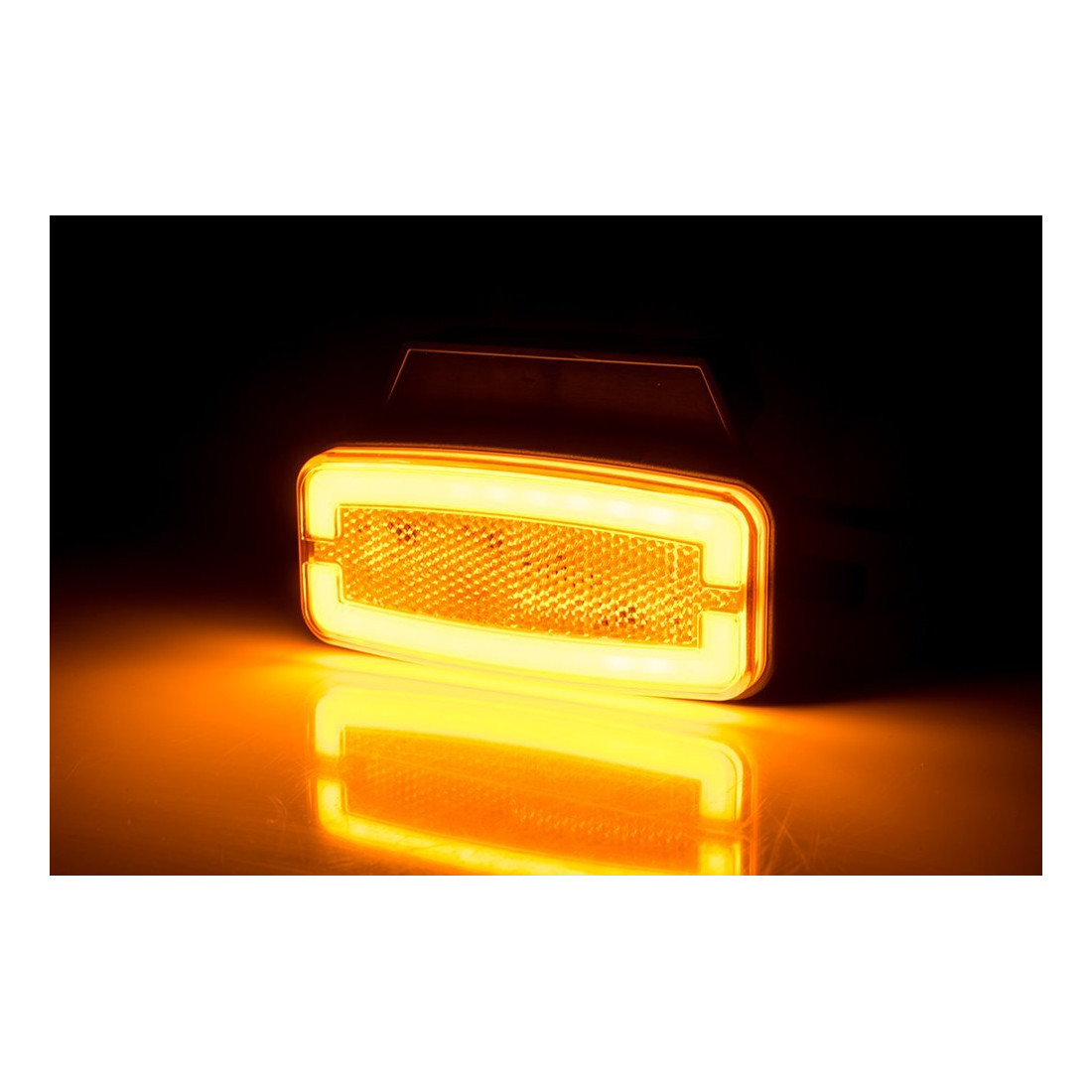 Dwufunkcyjna lampa obrysowa led w kolorze pomarańczowym z wieszakiem oraz z odblaskiem.