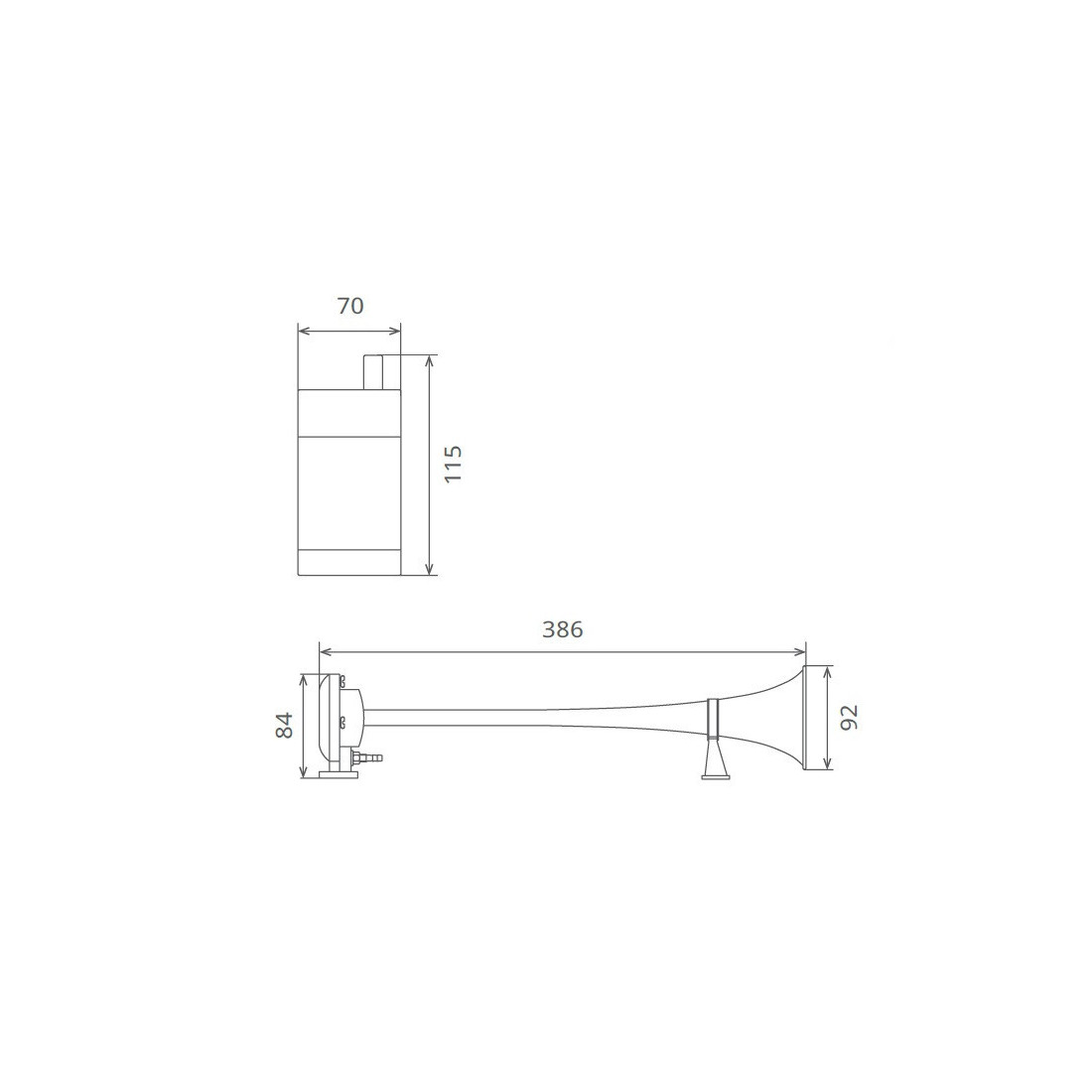 SEGER pneumatisk signal med inbyggd 12V elektrisk kompressor (kompressor). Ljud som ett lokomotiv.