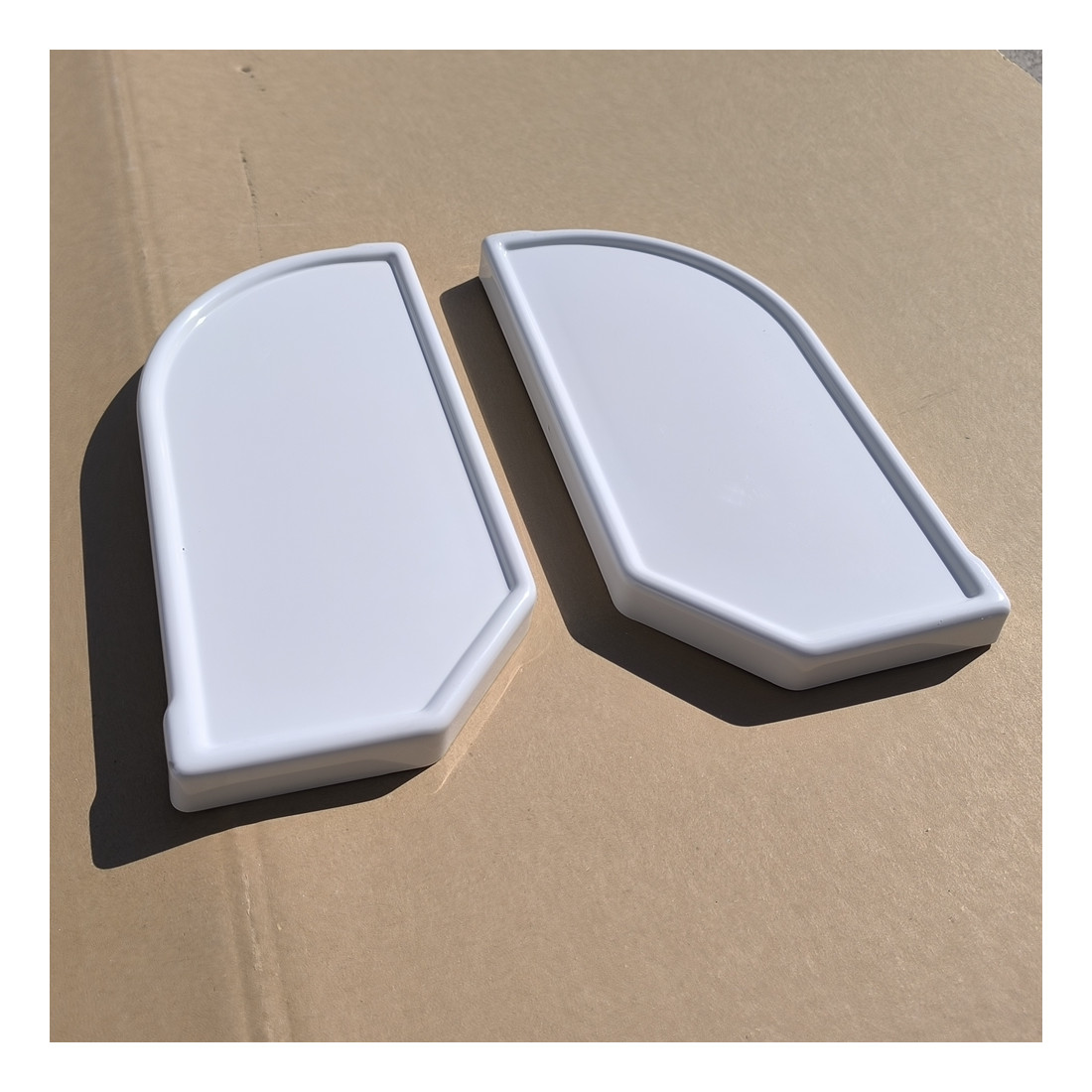Konstruktion: insprutad plast. Lätt och hållbar konstruktion. Pris för setet, vänster + höger sida.