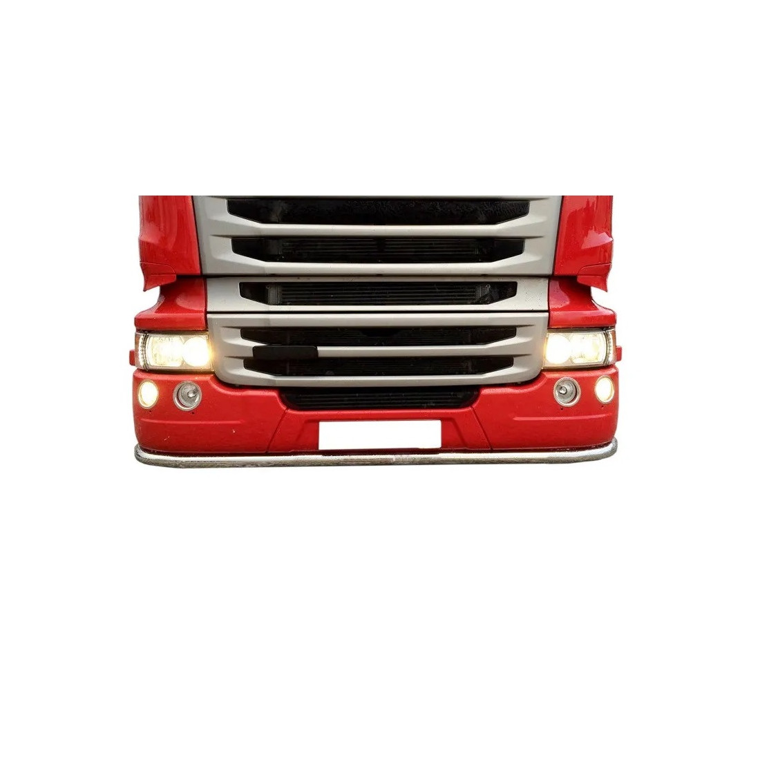 Stötfångarrör av rostfritt stål (spegelpolerat 304 rostfritt stål) avsedda för SCANIA R serie 04-18 fordon, version med LITEN stötfångare (gammal modell upp till 18, inte nästa generation). Satsen innehåller en monteringssats - fästen, skruvar.